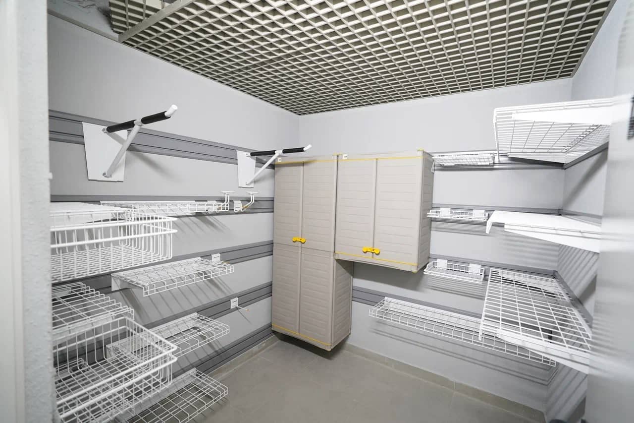 Полностью обустроенная кладовая. После монтажа мы проводим сухую уборку и забирем весь мусор, чтобы вы могли сразу использовать помещение.